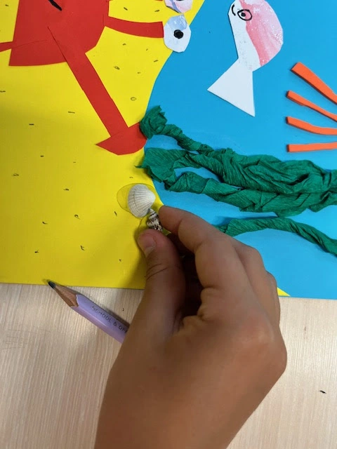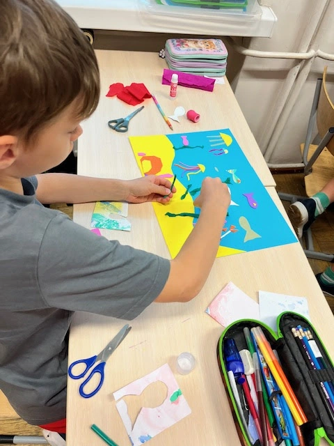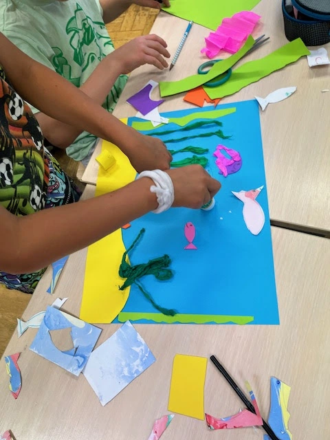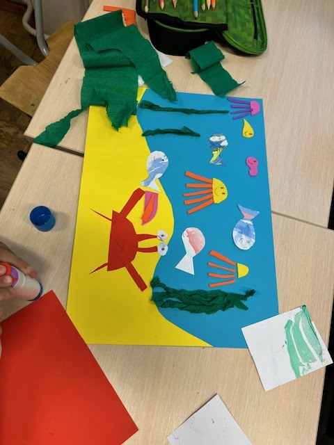 Na dnie oceanu - uczniowie 1a tworzą w parach