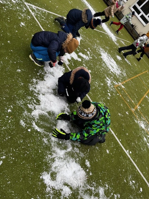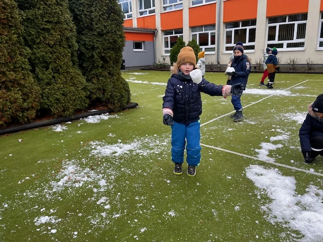 Zabawy w resztkach śniegu - klasa 1a